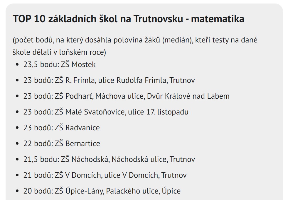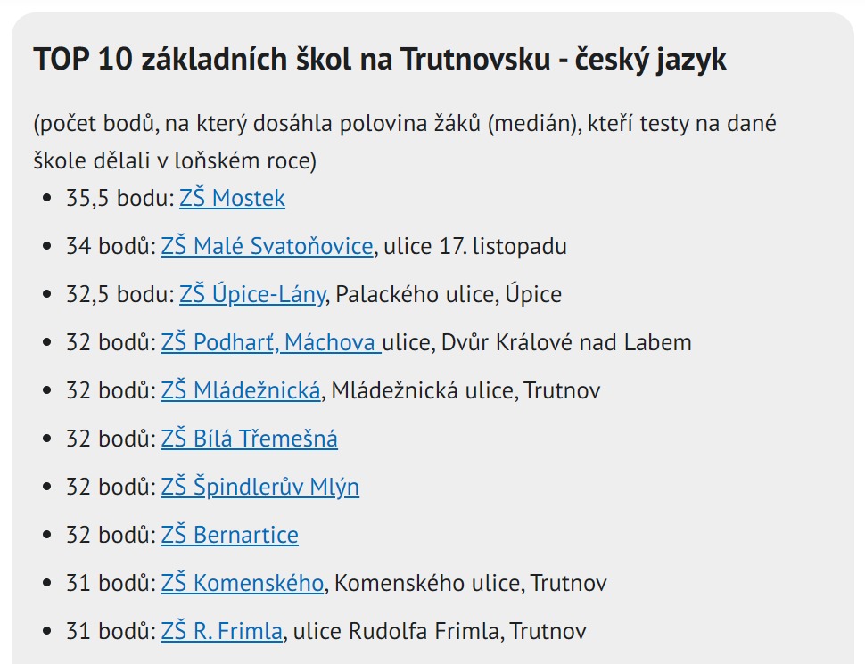 Ve výsledcích přijímacích zkoušek se naše škola při posledním přijímacím řízení umístila na čelních místech. Pořadí škol uvedl Krkonošský deník s využitím dat organizace Cermat.